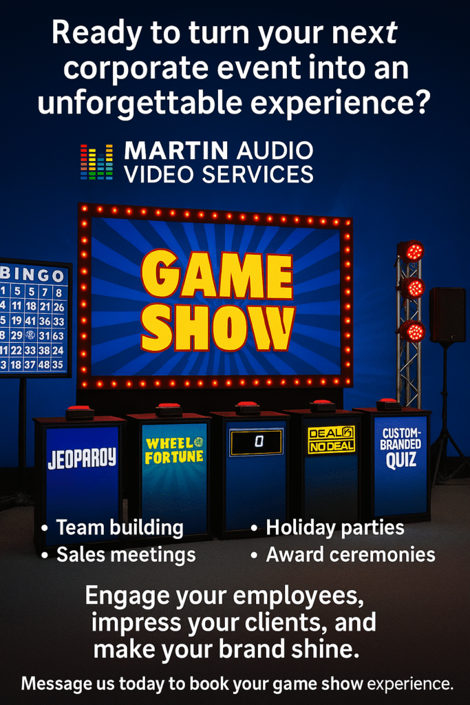 Whether it’s transforming physical spaces into magical events that thrill, inspire, and engage attendees or producing compelling video content for corporate events, web videos, and TV commercials, Martin AV Services excels in delivering exceptional results.